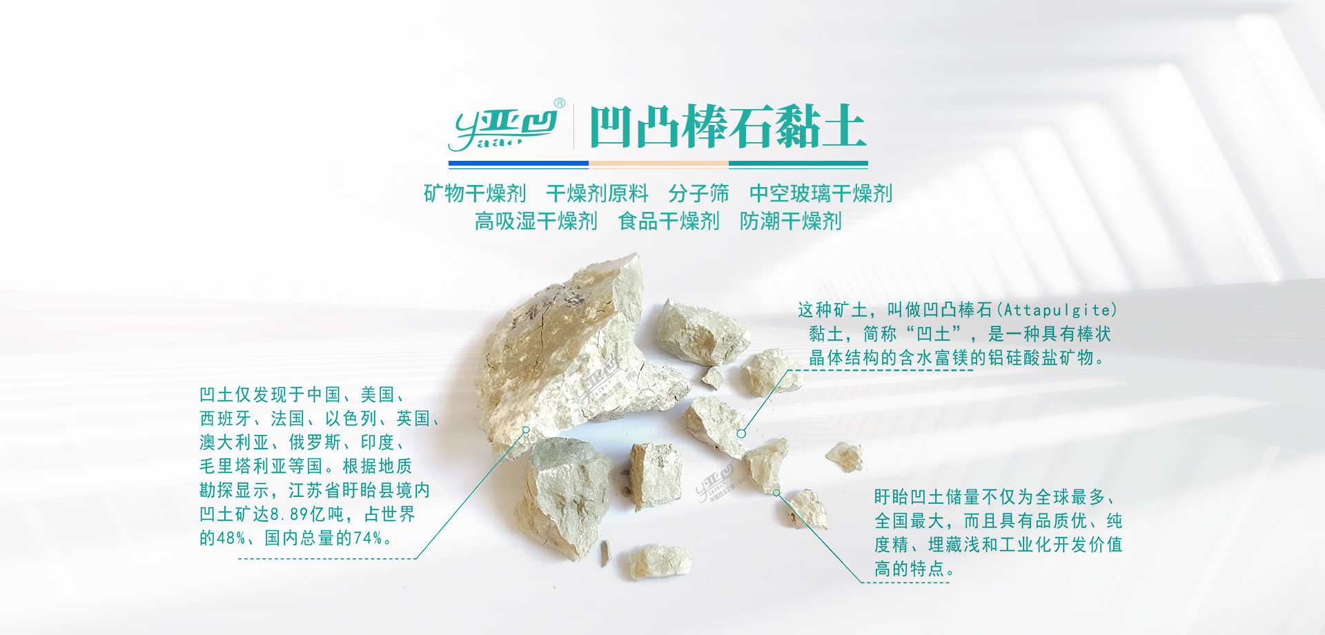 盱眙亞凹干燥劑科技有限公司(原盱眙雙鎮工貿有限公司),成立于2008年,公司位于全國凹凸棒石黏土儲量產區——盱眙縣,緊鄰121省道和331省道,距離新揚高速入口僅15公里,公司占地面積25畝,廠房面積3500平方米,年產量15000噸以上,是集干燥劑科研、生產、銷售于一體的綜合性企業(yè)。